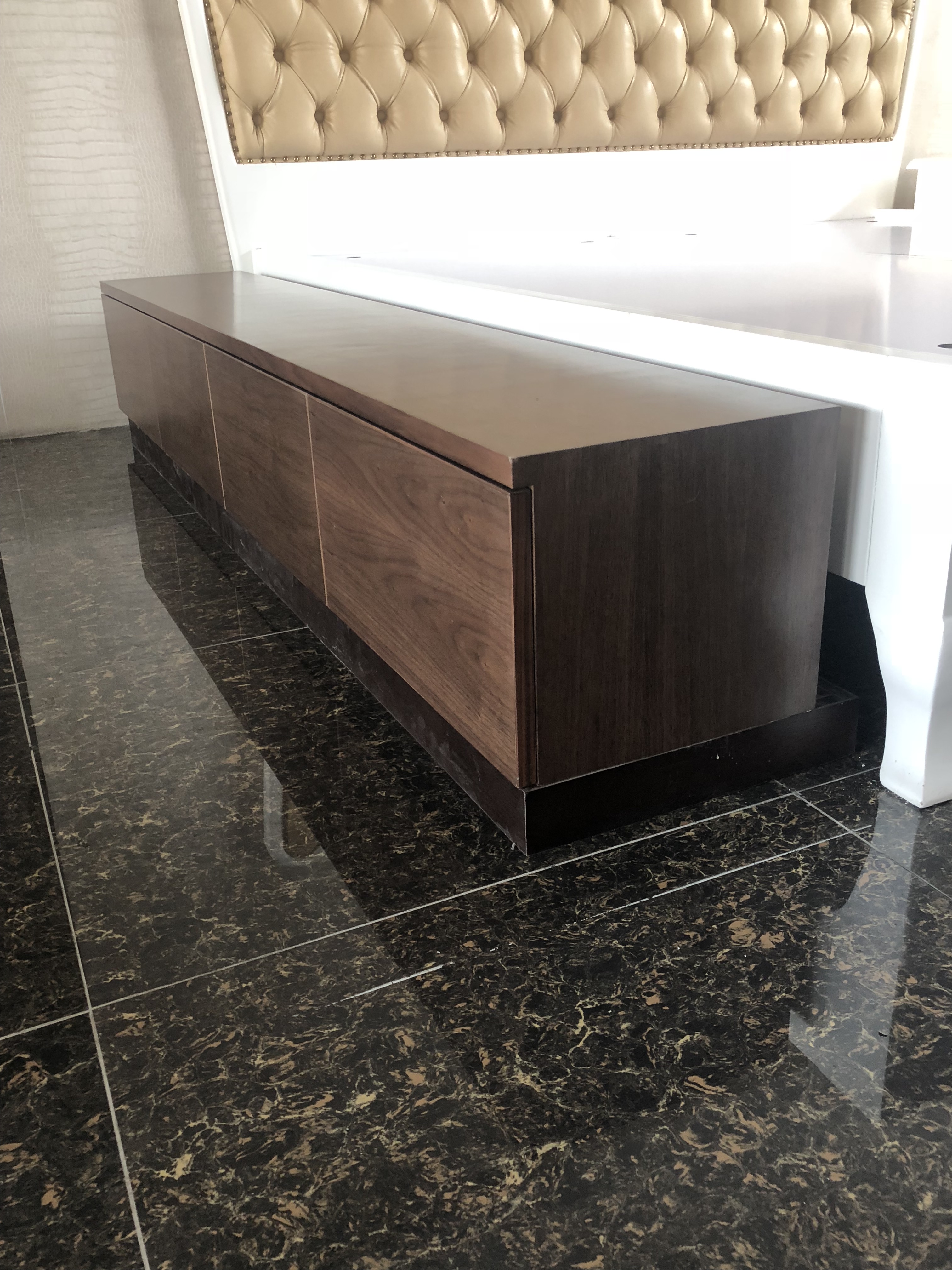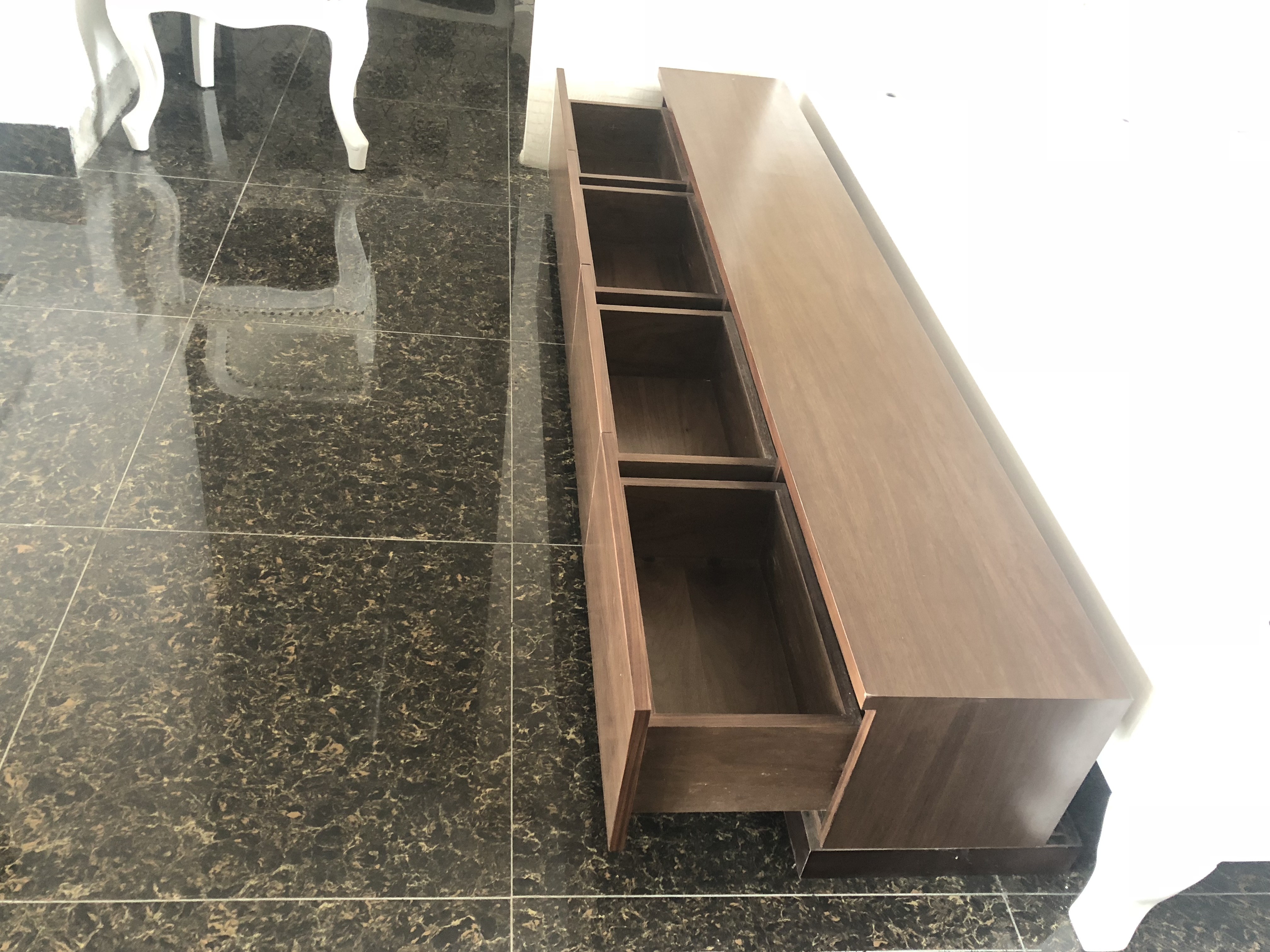 Kệ tivi 09 được làm từ gỗ tần bì veneer óc chó.