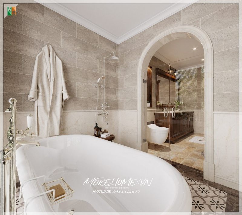 Thiết kế tách biệt giữa nhà tắm và nhà vệ sinh giúp cho việc sử dụng dễ dàng hơn và giúp cho phòng tắm luôn ẩm ướt và sạch sẽ.