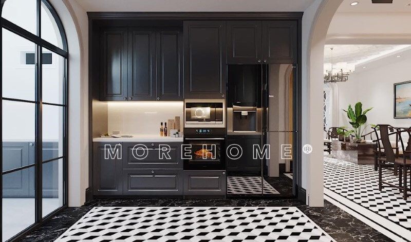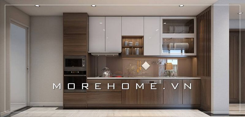 Thiết kế nội thất phòng bếp hiện đại và thuận tiện cho người nội trợ ở căn hộ chung cư.