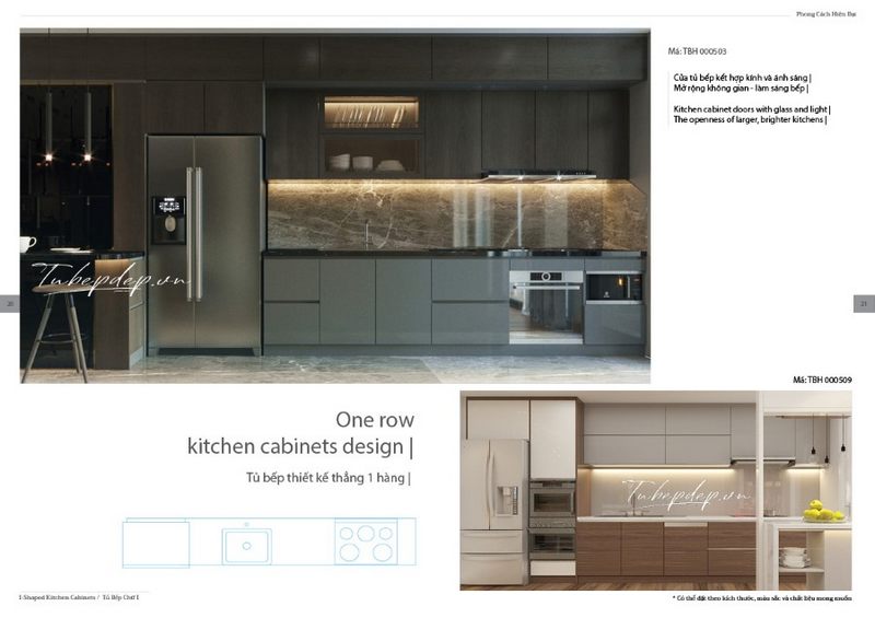 Thiết kế nội thất phòng bếp cho các căn hộ hiện đại, đơn giản và tiện lợi.