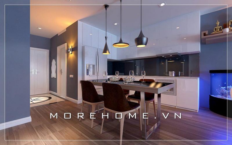Thiết kế nội thất phòng bếp để phù hợp với không gian nhà chung cư hiện đại và đơn giản.
