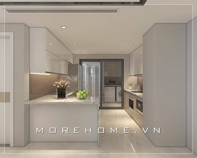 Nội thất phòng bếp hiện đại và tiện nghi được thiết kế để phù hợp với nhà chung cư.
