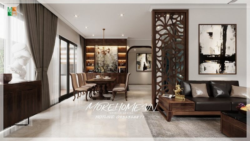Mẫu thiết kế phòng khách liên kết với phòng ăn hiện đại được áp dụng cho các căn hộ, nhà phố và biệt thự đã tạo ra ấn tượng mạnh mẽ.